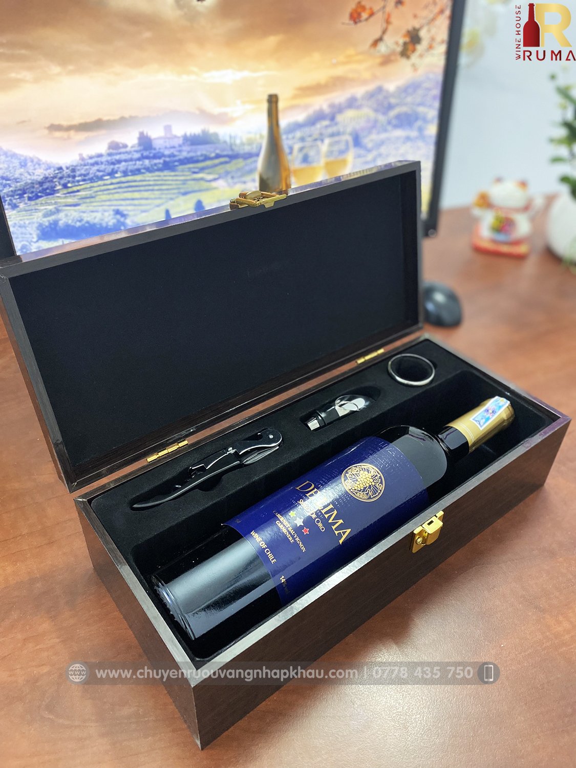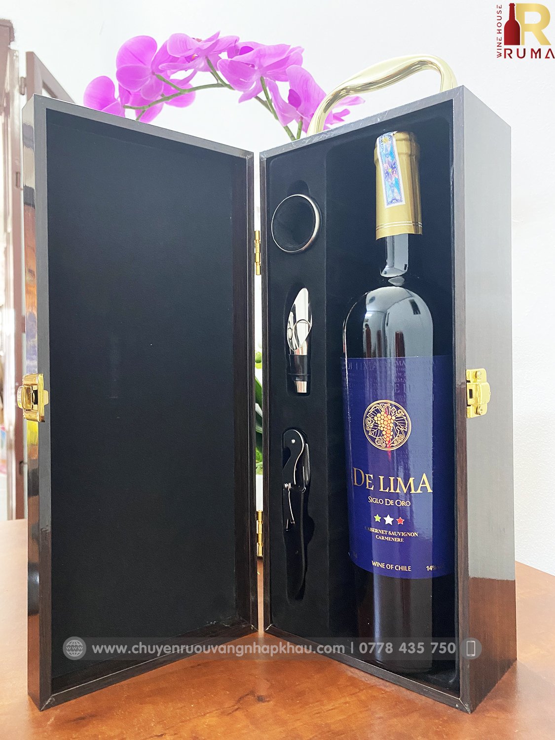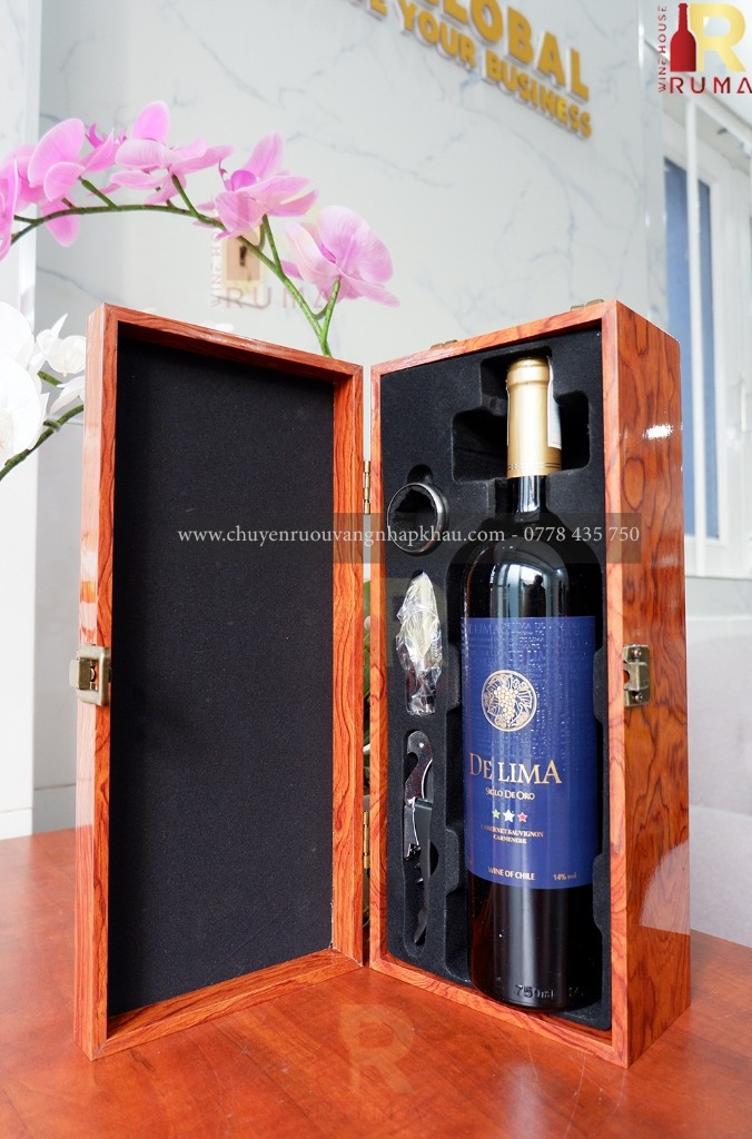 Set quà hộp một chai vang Chile De Lima - hộp sơn mài tại RUMA sẽ bao gồm: