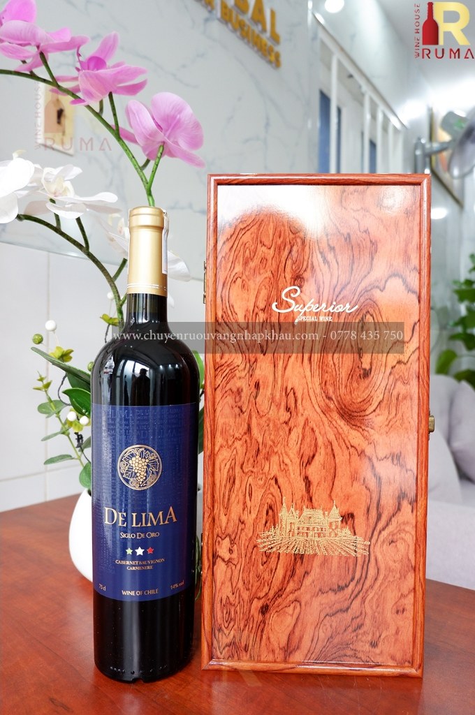 - Vang Chile De Lima là mẫu rượu vang đỏ với nồng độ trung bình 14%, được làm từ giống nho nổi tiếng Cabernet Sauvignon.
