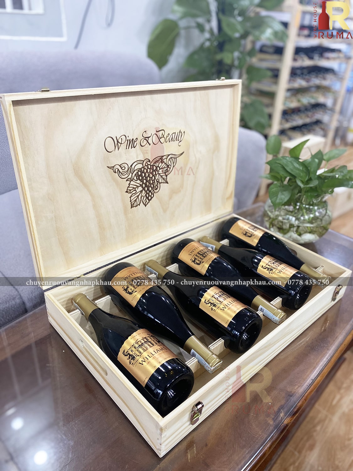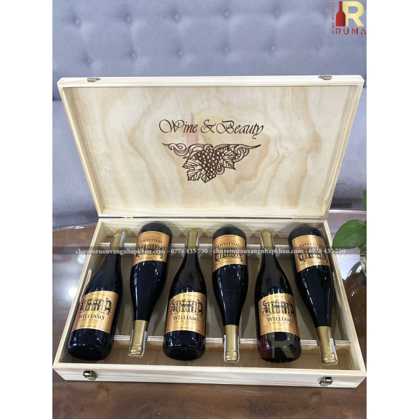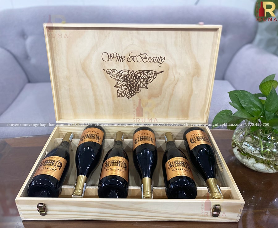 Set quà tặng hộp gỗ sáu chai vang Úc Williams tại RUMA sẽ bao gồm: