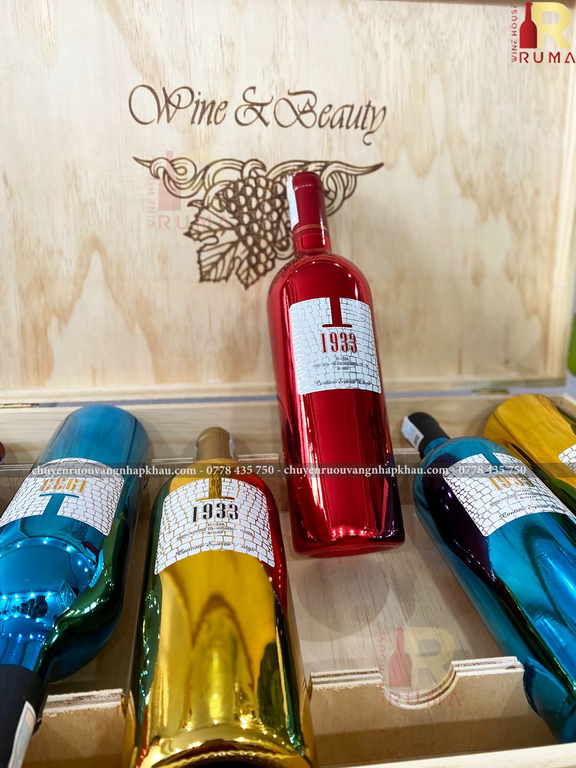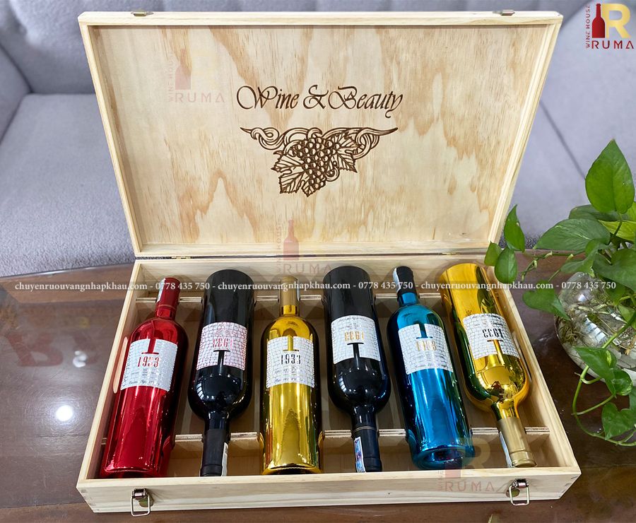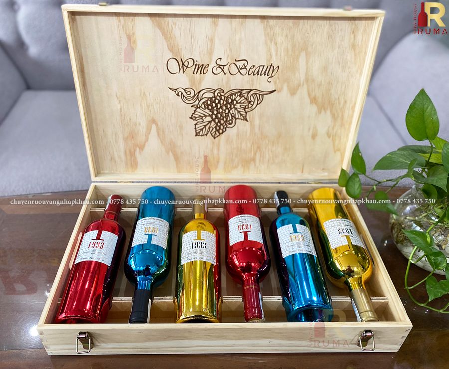 + Mix vang chat - nồng độ 14 %: 2 chai vang Ý 1933 Ruby, 2 chai vang 1933 Topaz và 2 chai vang 1933 Blue.