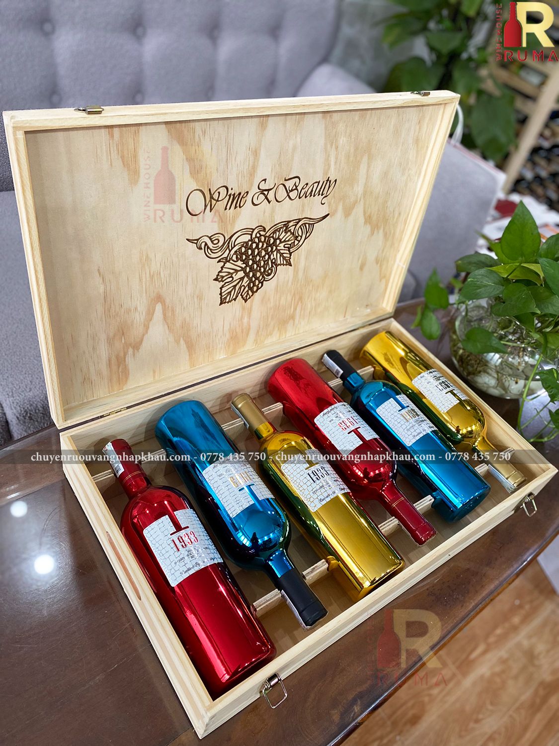 Set quà tặng hộp gỗ sáu chai vang Ý 1933 tại RUMA sẽ bao gồm: