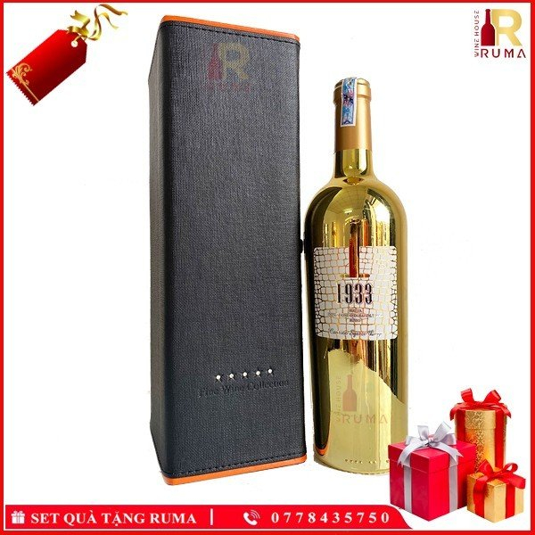 Set quà tặng hộp da 1 chai rượu vang Ý 1933 Topaz
