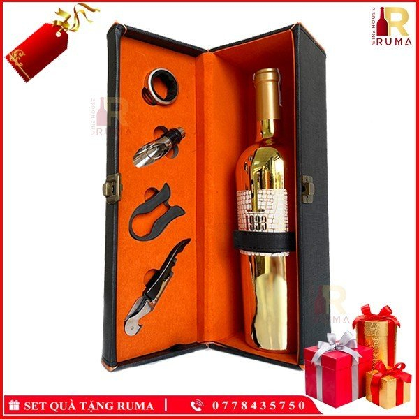 Set quà hộp da một chai vang Ý 1933 Topaz tại RUMA sẽ bao gồm:
