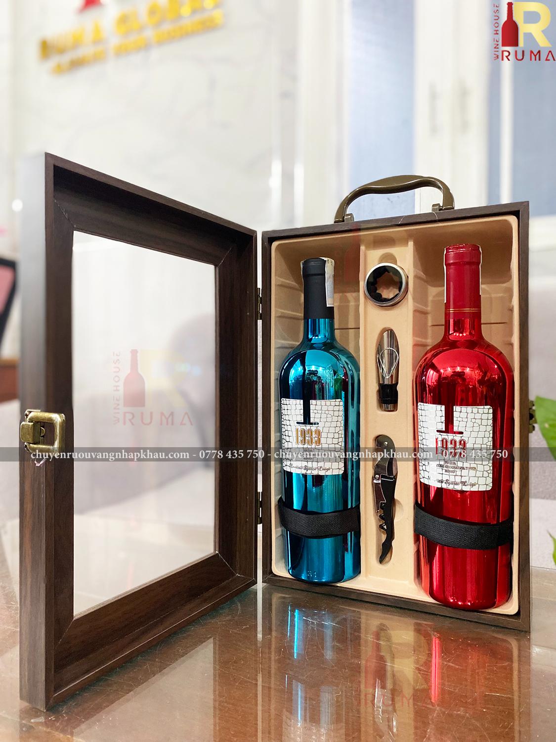 - 2 chai rượu vang Ý 1933 nhập khẩu chính hãng. Phối dòng 1933 Ruby (màu đỏ), 1933 Topaz (màu vàng) và 1933 Blue (màu xanh).