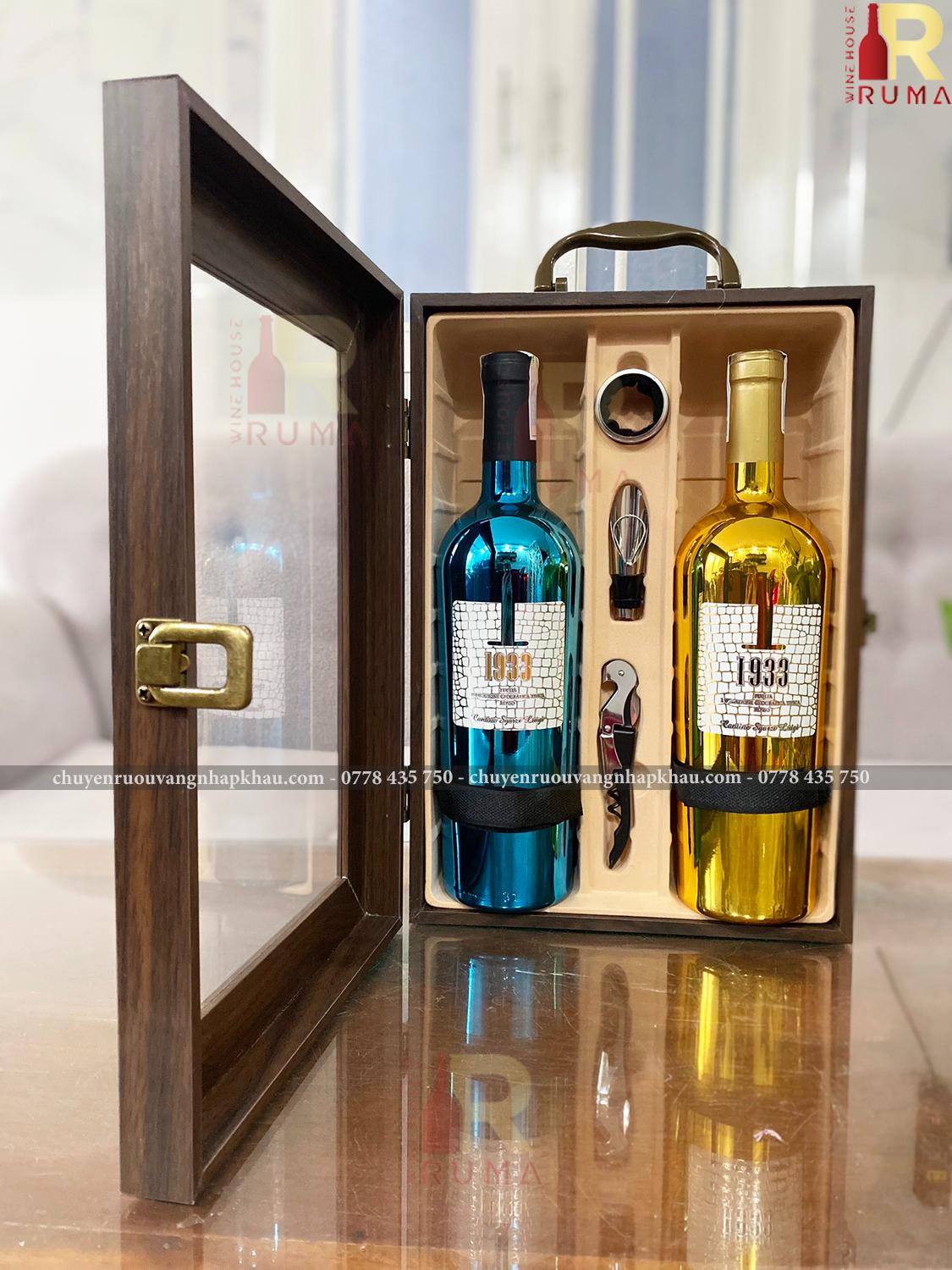 Set quà tặng hộp kính hai chai vang Ý 1933 tại RUMA sẽ bao gồm: