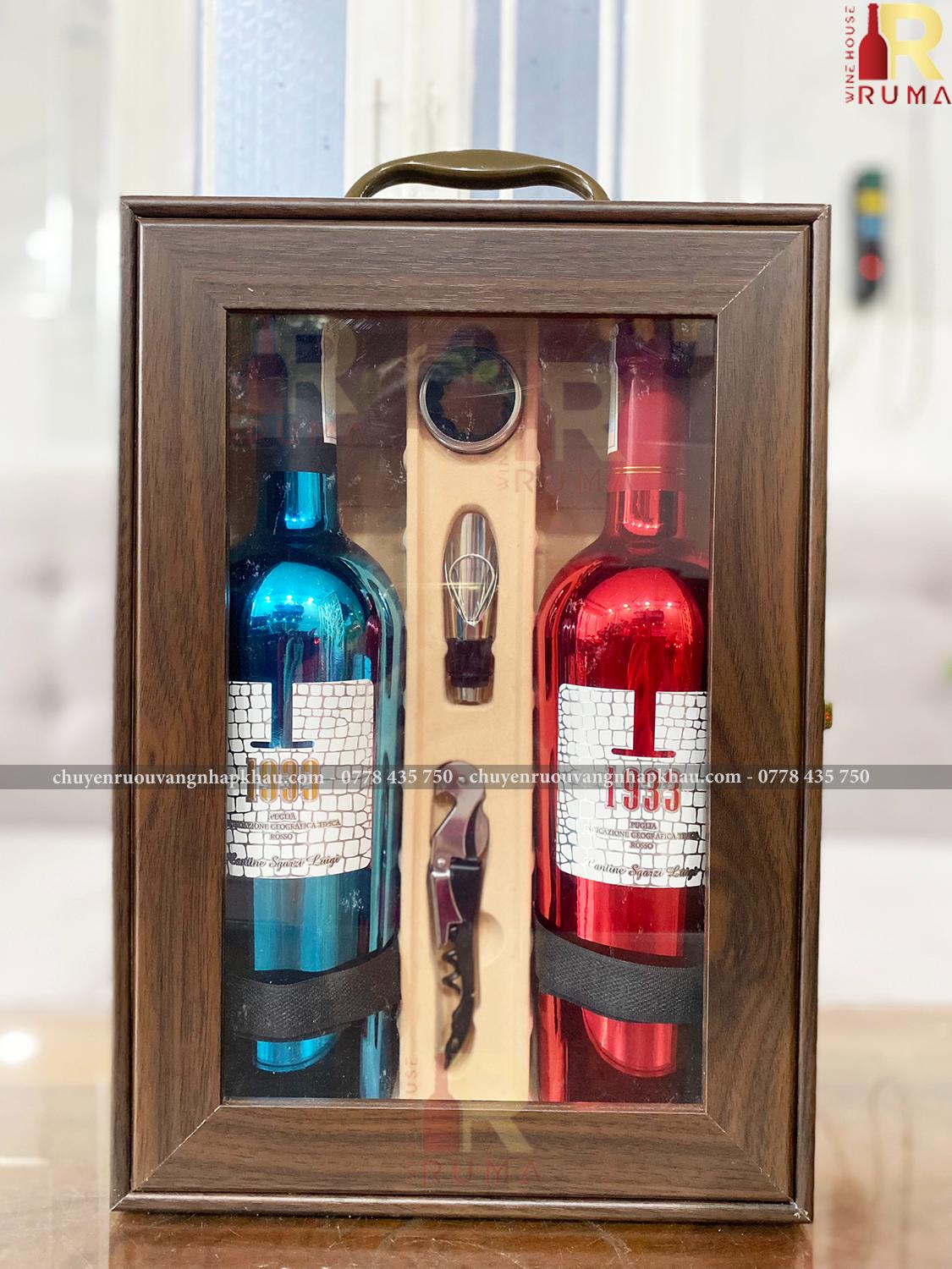 Thành phần của set quà tặng hộp kính 2 chai rượu vang Ý 1933