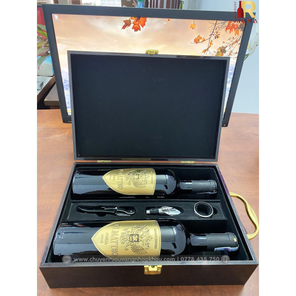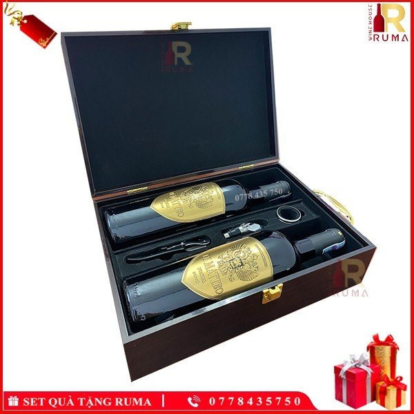 Set quà tặng hộp sơn mài hai chai vang Ý Di Matteo tại RUMA sẽ bao gồm:
